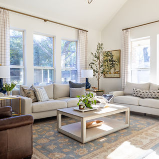 From shifting rooms entirely to carving out new ones (hello, cozy den and walk-in pantry), we were able to give them the space they’d been dreaming about for years. One that feels functional for day-to-day life, but also full of charm, personality, and calm. Warm woods, soft blues, and layered textures keep things easy on the eyes. That Dallas Toile wallpaper in the laundry? A little wink to their engagement at Reunion Tower.